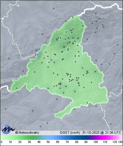 | 16,1 °C / 98% |  | 8,0°C / 71% |  |  | Calma |  | 18 km/h |  | 1.016 hPa |  | 0,2 mm |