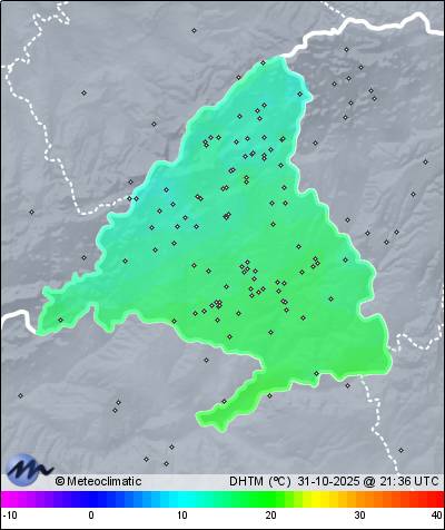 | 16,1 °C / 98% |  | 8,0°C / 71% |  |  | Calma |  | 18 km/h |  | 1.016 hPa |  | 0,2 mm |