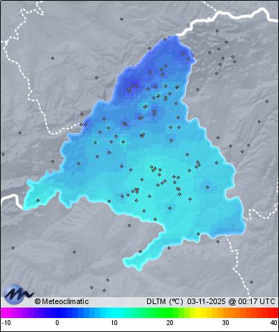 | 02-11-2025 | | | Máx. | Mín. | | | Temperatura | 13,7 | 7,2 | °C | | Humedad | 96 | 58 | % | | Viento | 47 | n/a | km/h | | Presión | 1.025 | 1.017 | hPa | | Precipitación | 0,0 | mm |