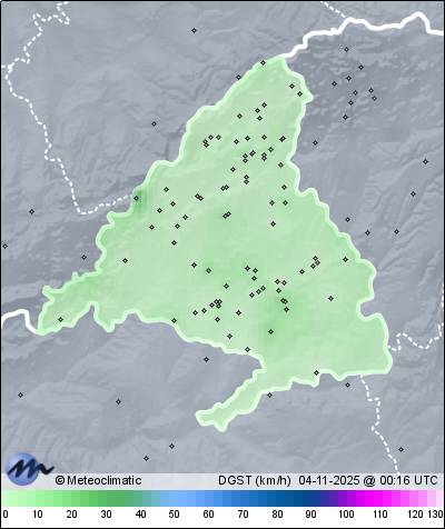| 03-11-2025 | | | Máx. | Mín. | | | Temperatura | 18,9 | -1,2 | °C | | Humedad | 92 | 50 | % | | Viento | 10 | n/a | km/h | | Presión | 1.029 | 1.024 | hPa | | Precipitación | 0,0 | mm |