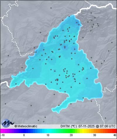 | Actualizado: 03:43 UTC | 7,1°C 83% | 7,6 °C / 86% | | 6,7°C / 76% | | Calma | | 5 km/h |