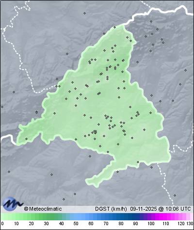 | Actualizado: 08:43 UTC | 6,5°C 88% | 7,0 °C / 99% | | 1,5°C / 86% | | Calma | | 7 km/h | | 1.028 hPa |