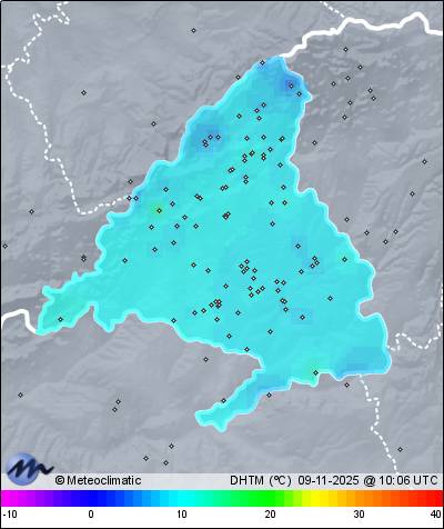 | Actualizado: 08:33 UTC | 7,9°C 75% | 7,9 °C / 93% |  | | 2,8°C / 75% | | 4 km/h E | | 10 km/h | | 1.023 hPa |