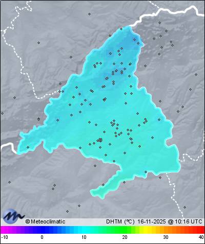 | Actualizado: 08:29 UTC | 4,2°C 96% | 5,3 °C / 96% | | 3,4°C / 95% | | Calma | | 5 km/h | | 0,2 mm |