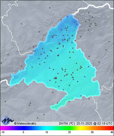 | Actualizado: 00:26 UTC | 9,9°C 75% | 11,2 °C / 95% | | 9,9°C / 75% | | 4 km/h NNW | | 15 km/h | | 1.016 hPa |