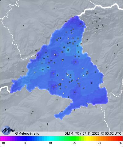 | 27-11-2025 | | | Máx. | Mín. | | | Temperatura | 5,8 | 5,0 | °C | | Humedad | 63 | 59 | % | | Viento | 6 | n/a | km/h | | Presión | 1.030 | 1.030 | hPa | | Precipitación | 0,0 | mm |