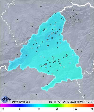 | Actualizado: 00:01 UTC | 11,8°C 90% | 11,9 °C / 91% |  | | 11,2°C / 90% | | Calma | | 3 km/h | | 1.022 hPa |