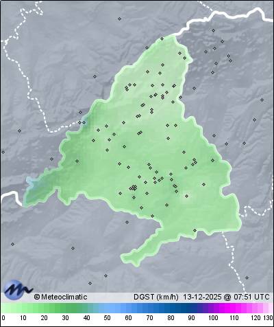 | Actualizado: 05:58 UTC | 5,2°C 94% | 6,9 °C / 96% | | 4,4°C / 92% | | Calma | | 5 km/h | | 1.025 hPa |