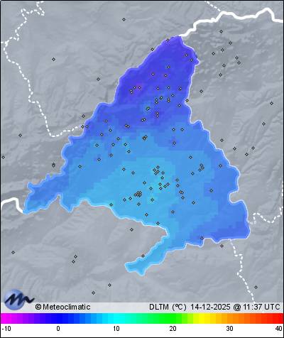 | Actualizado: 05:30 UTC | 5,7°C 90% | 6,9 °C / 91% | | 5,4°C / 87% | | Calma | | 3 km/h | | 1.022 hPa |