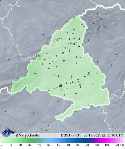 | Actualizado: 05:15 UTC | 5,4°C 85% | 5,6 °C / 95% | | 4,8°C / 85% | | 15 km/h E | | 41 km/h | | 1.018 hPa |