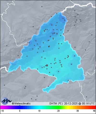 | Actualizado: 05:29 UTC | 4,5°C 94% | 5,9 °C / 95% | | 4,5°C / 91% | | Calma | | 11 km/h | | 1.024 hPa |