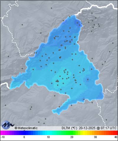 | Actualizado: 05:43 UTC | 7,0°C 93% | 8,1 °C / 93% | | 6,6°C / 91% | | 1.015 hPa |
