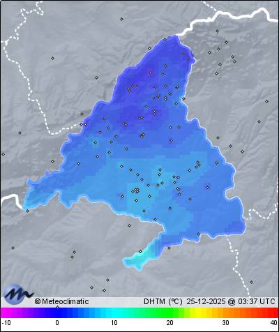 | Actualizado: 01:13 UTC | 3,6°C 87% | 10,5 °C / 96% | | 0,9°C / 65% | | 1.007 hPa |