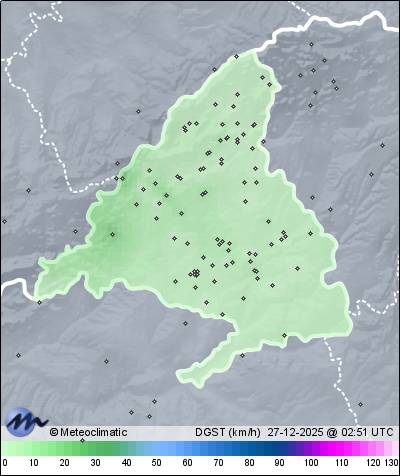 | Actualizado: 00:50 UTC | 4,1°C 93% | 4,2 °C / 95% | | 3,5°C / 93% | | Calma | | 5 km/h | | 1.013 hPa |