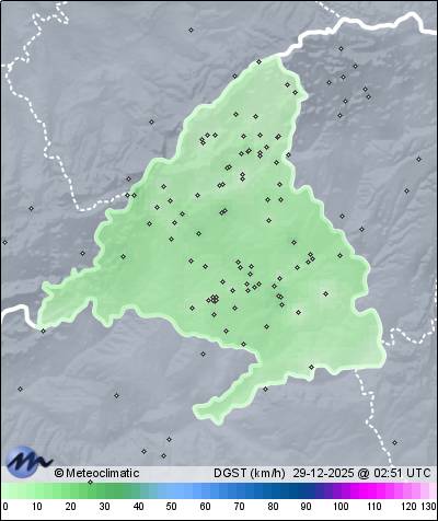 | Actualizado: 00:32 UTC | 5,1°C 90% | 5,6 °C / 90% | | 5,1°C / 88% | | Calma | | 0 km/h | | 1.018 hPa |