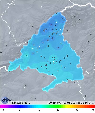 | Actualizado: 00:42 UTC | 3,7°C 93% | 4,7 °C / 93% | | 3,7°C / 93% | | Calma | | 3 km/h |