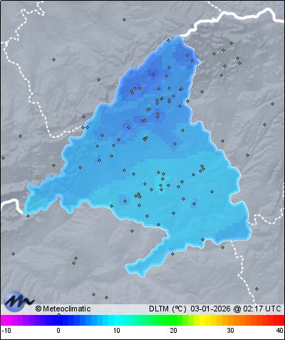 | Actualizado: 00:34 UTC | 8,5°C 84% | 10,4 °C / 99% |  | | 3,8°C / 78% | | 1 km/h N | | 18 km/h | | 1.006 hPa |