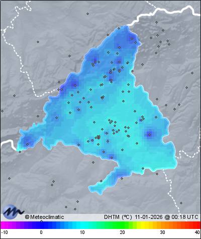 | Actualizado: 10:18 UTC | 3,6°C 74% | 4,3 °C / 82% | | 2,1°C / 72% | | 8 km/h NW | | 33 km/h | | 1.028 hPa |