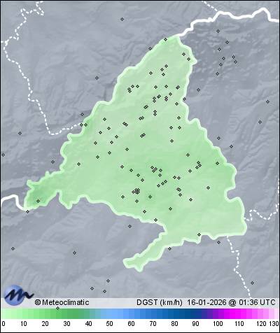 | Actualizado:15-01-2026 23:57 UTC | 2,2°C 90% | 2,2 °C / 90% | | 1,7°C / 90% | | Calma | | 0 km/h | | 1.017 hPa |
