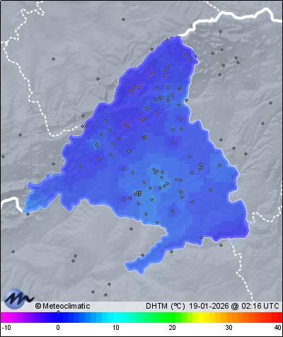 | Niebla heladora | | Actualizado: 00:44 UTC | -4,2°C 96% | -2,6 °C / 97% | | -4,3°C / 95% | | Calma | | 5 km/h | | 1.023 hPa |