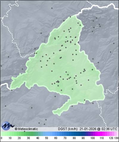 | Actualizado: 00:58 UTC | 4,4°C 95% | 4,8 °C / 97% | | 2,2°C / 93% | | 1 km/h NNE | | 15 km/h | | 1.019 hPa |