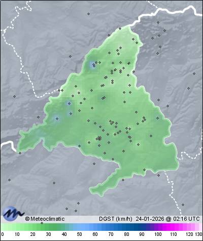 | Rascafria-Los Espinares | 1120 | -0,4 | -0,2 | -0,6 | 88 | 90 | 86 | 992 | 993 | 992 | 35 NNW | 52 | - | 2,5 | |