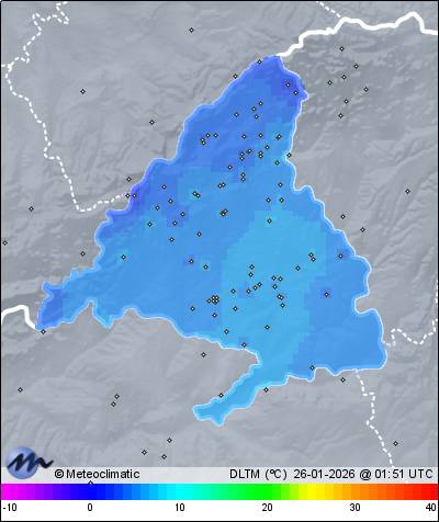 | Actualizado: 00:29 UTC | 7,5°C 73% | 7,7 °C / 73% | | 7,2°C / 67% | | 1 km/h E | | 4 km/h | | 1.010 hPa |