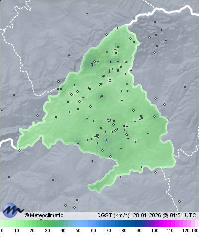 | Actualizado: 00:29 UTC | 2,7°C 69% | 3,0 °C / 71% | | 2,6°C / 64% | | 2 km/h SW | | 13 km/h | | 1.002 hPa |