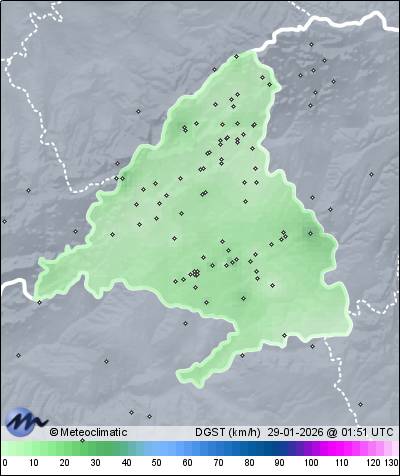 | Actualizado: 00:28 UTC | 3,1°C 91% | 3,5 °C / 91% | | 3,1°C / 88% | | Calma | | 2 km/h | | 0,2 mm |