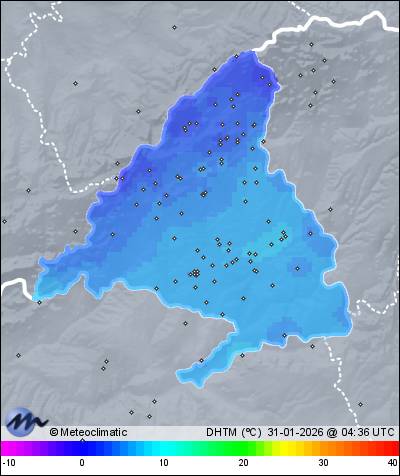 | Actualizado: 00:20 UTC | 5,7°C 80% | 6,0 °C / 89% | | 5,6°C / 80% | | Calma | | 22 km/h | | 1.012 hPa |