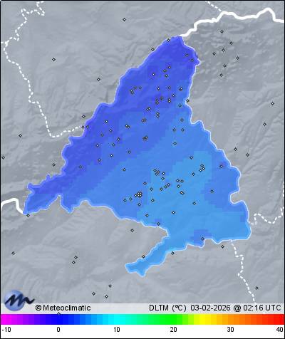 | Actualizado: 00:43 UTC | 2,6°C 85% | 2,7 °C / 91% | | 1,6°C / 83% | | Calma | | 9 km/h | | 1.003 hPa |