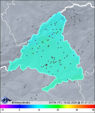 | Actualizado:09-02-2026 23:48 UTC | 10,8°C 93% | 10,8 °C / 99% | | 1,9°C / 91% | | Calma | | 9 km/h | | 1.011 hPa |