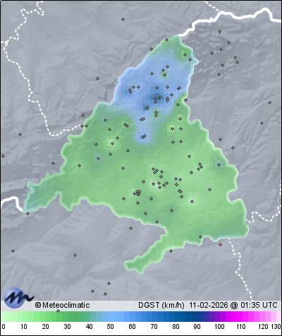 | Rascafria-Los Espinares | 1120 | 9,5 | 13,7 | 9,5 | 75 | 93 | 73 | 1.010 | 1.011 | 1.006 | 28 WSW | 73 | - | 7,5 | |