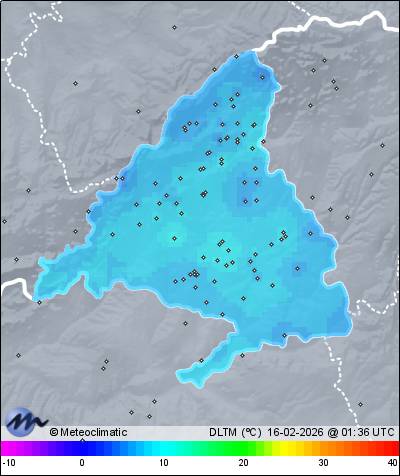| Actualizado: 00:15 UTC | 9,7°C 73% | 9,7 °C / 73% | | 9,6°C / 73% | | 5 km/h W | | 16 km/h | | 1.028 hPa |