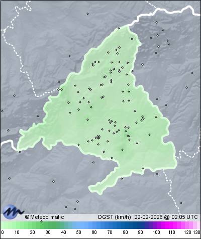 | Actualizado: 00:32 UTC | 5,8°C 92% | 6,5 °C / 93% | | 5,3°C / 87% | | 1 km/h ENE | | 4 km/h | | 1.032 hPa |