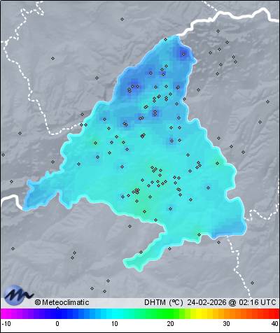 | Actualizado: 00:32 UTC | 8,3°C 91% | 9,0 °C / 93% | | 8,2°C / 89% | | Calma | | 6 km/h | | 1.025 hPa |