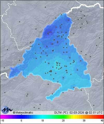 | Actualizado: 01:28 UTC | 5,6°C 86% | 6,5 °C / 87% | | 5,6°C / 83% | | Calma | | 7 km/h | | 1.020 hPa |