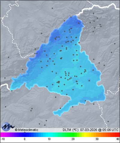 | Actualizado: 02:05 UTC | 4,8°C 93% | 5,1 °C / 94% | | 4,7°C / 92% | | 3 km/h NNW | | 11 km/h | | 1.017 hPa | | 0,2 mm |