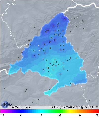 | Actualizado: 01:39 UTC | 3,2°C 92% | 4,1 °C / 92% |  | | 2,9°C / 90% | | 5 km/h N | | 8 km/h | | 1.012 hPa |