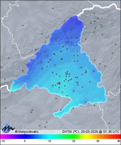 | Actualizado: 00:19 UTC | 1,3°C 68% | 3,2 °C / 70% | | 1,3°C / 63% | | 6 km/h NNW | | 23 km/h | | 1.028 hPa |