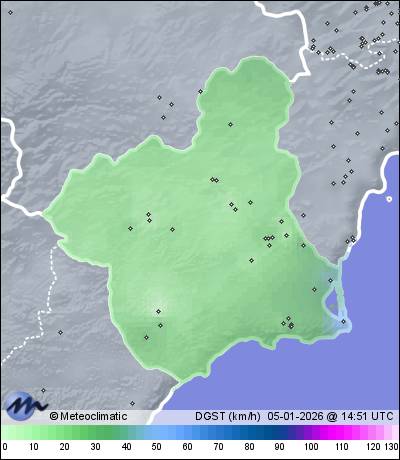 | Murcia - San Antón | 42 | 9,2 | 10,7 | 9,2 | 97 | 97 | 91 | 1.005 | 1.005 | 1.004 | 1 NNE | 11 | 8,9 | 10,7 | |