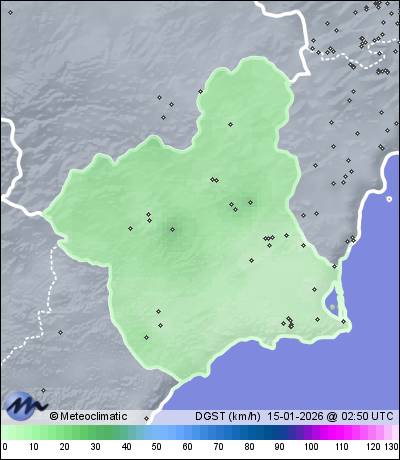 | Murcia - San Antón | 42 | 9,9 | 9,9 | 5,7 | 81 | 93 | 80 | 1.021 | 1.021 | 1.019 | 4 WNW | 9 | - | 30,0 | |
