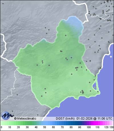| Murcia - San Antón | 42 | 16,1 | 18,5 | 9,0 | 56 | 68 | 46 | 1.011 | 1.018 | 1.011 | 3 NNE | 15 | - | 40,9 | |