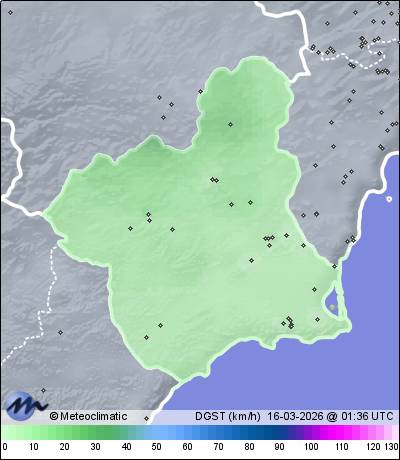 | Murcia - B.º del Progreso | 46 | 9,8 | 10,1 | 9,8 | 70 | 70 | 68 | 1.019 | 1.019 | 1.018 | 1 WSW | 5 | - | 118,3 | |