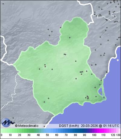 | Murcia - B.º del Progreso | 46 | 13,2 | 16,1 | 12,5 | 75 | 90 | 58 | 1.014 | 1.015 | 1.012 | 4 NNE | 33 | - | 118,3 | |