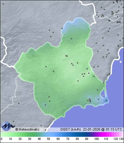 | Lorca - Torrecilla | 307 | 10,7 | 14,7 | 8,1 | 62 | 89 | 54 | 1.008 | 1.008 | 1.003 | 13 WNW | 46 | - | 42,7 | |