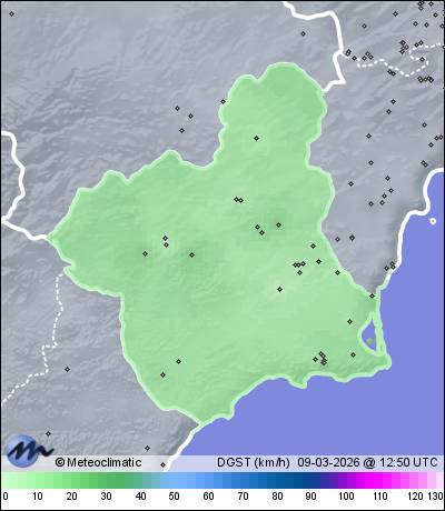 | Murcia - San Antón | 42 | 16,9 | 17,0 | 6,8 | 68 | 99 | 67 | 1.021 | 1.023 | 1.021 | 1 SSW | 11 | 0,3 | 83,1 | |