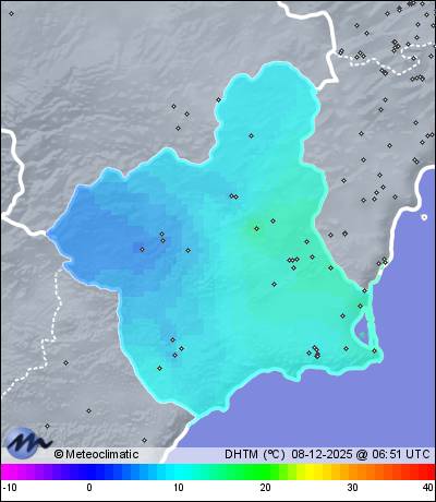 | Murcia - Centro | 70 | 10,7 | 13,4 | 10,6 | 76 | 76 | 70 | 1.021 | 1.021 | 1.020 | 1 WSW | 17 | - | 398,7 | |