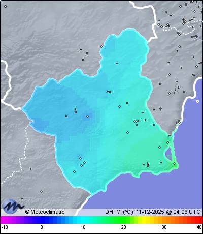 | Murcia - P.Tocinos | 43 | 11,4 | 12,7 | 11,4 | 88 | 88 | 86 | 1.023 | 1.023 | 1.022 | 4 SSE | 11 | - | 333,6 | |