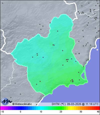 | Murcia - P.Tocinos | 43 | 12,3 | 12,3 | 7,9 | 81 | 95 | 81 | 1.022 | 1.023 | 1.021 | 6 WSW | 14 | 0,3 | 87,5 | |